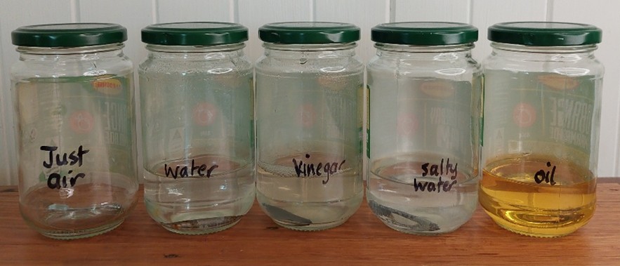 - make initial observations and discuss the importance of using detailed vocabulary in diagrams/notes, such as ‘small amount of rust on nail’ and ‘clear water/no discoloration’.