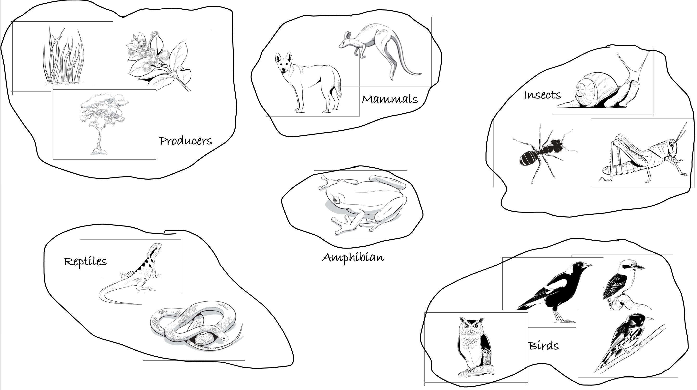 Students arrange the images of plants and animals into groups/categories. They can make different types of groups, or sub groups.